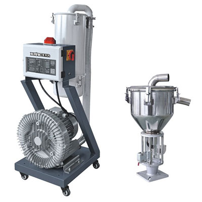A pair of two four separation type automatic material feeding machine series, suitable for the transport of plastic particles. the main use of motor operation to produce a vacuum, so that the material can produce a pressure difference to transport the plastic.